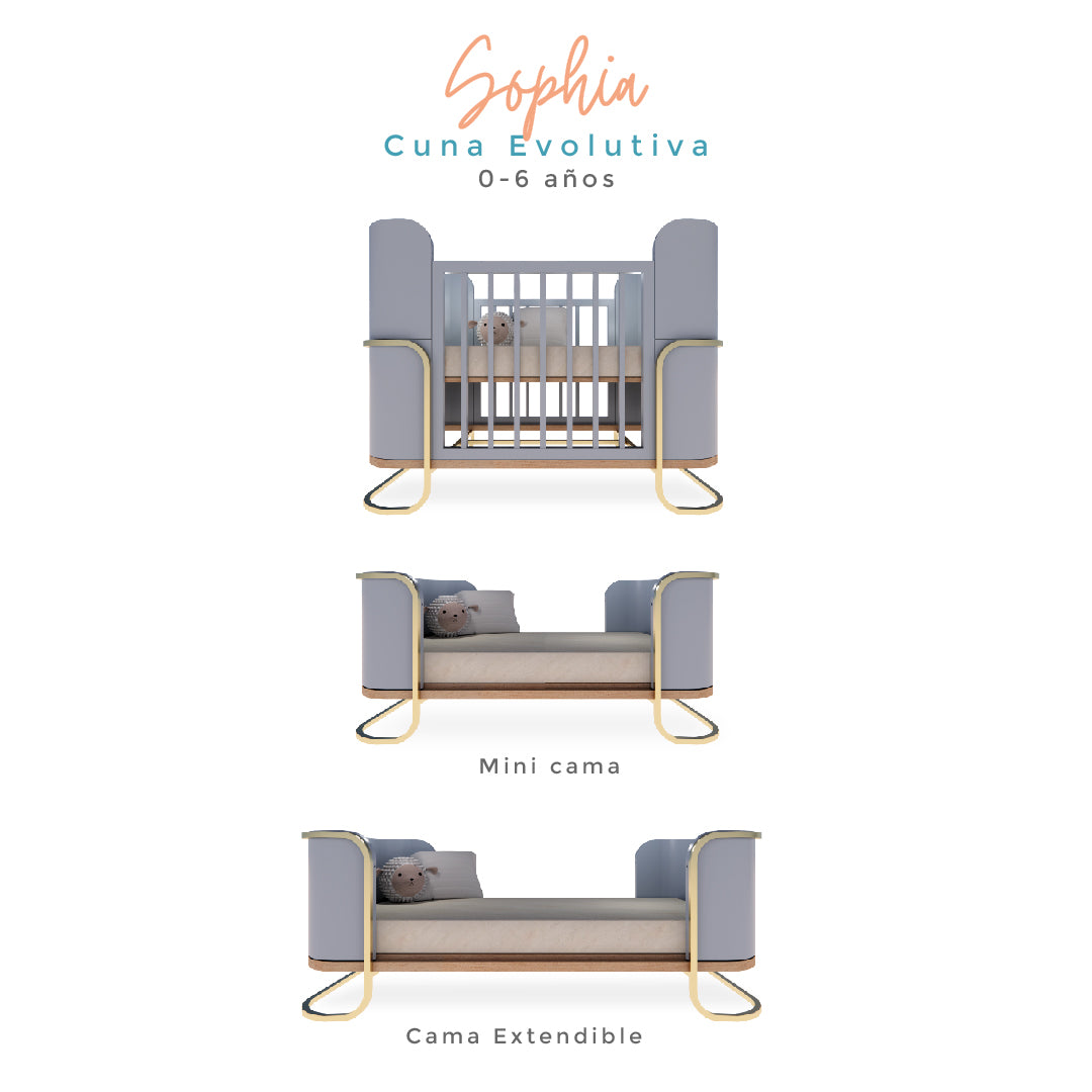 Cuna evolutiva de lujo Ref. Sophia es la elección perfecta para aquellos que buscan estilo y funcionalidad en una sola pieza única y sofisticada . Diseñada para crecer con tu bebé, esta cuna ofrece máxima comodidad y durabilidad. Con detalles metálicos y esquinas redondeadas, la Ref. Sophia es Fabricada con materiales de primera calidad. Una inversión en el bienestar de tu hij@