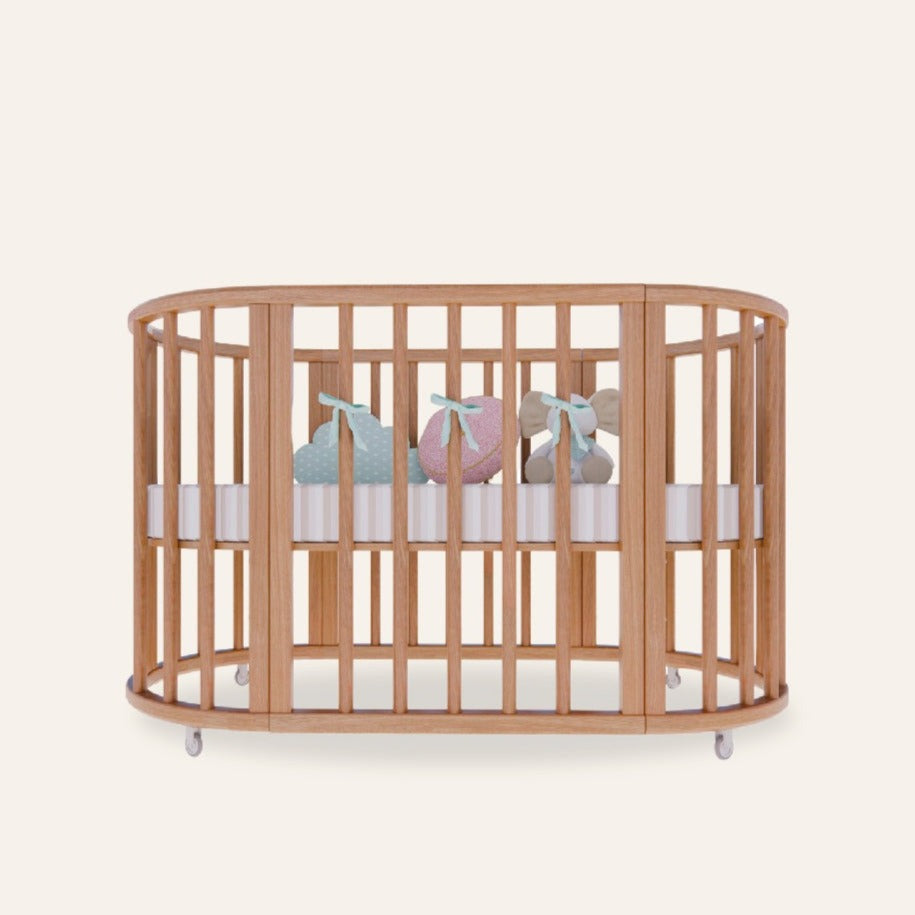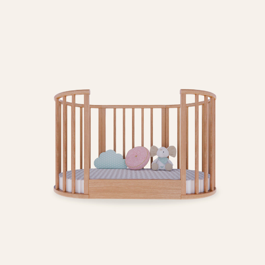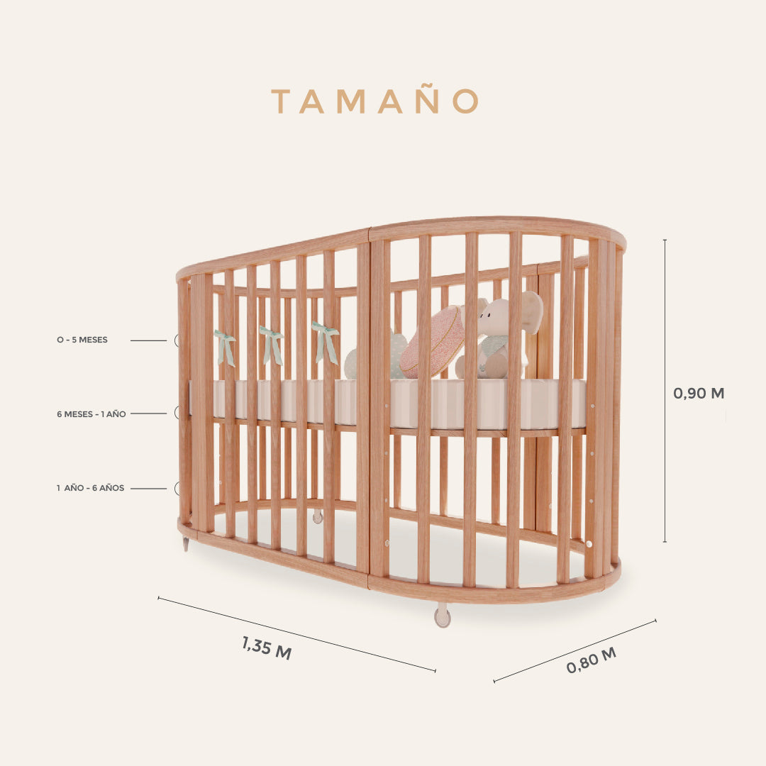 Su diseño curvo y ligero ofrece practicidad y confort. Destacando entre sus funciones la opción de cuna colecho, permite disfrutar de la cercanía con tu bebé durante la noche. Además, su fácil desplazamiento facilita la adaptación a tus necesidades.
