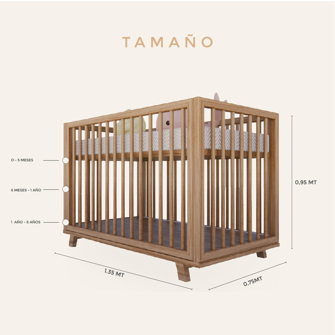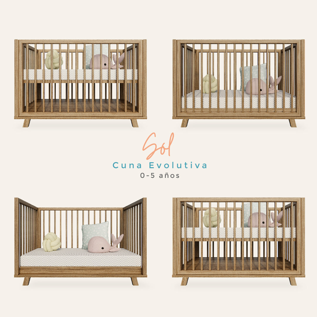 Llena de calidez tus espacios con nuestra cuna Sol: una cuna evolutiva se adapta a tu estilo y al crecimiento de tu hijo. Con un diseño lineal y minimalista esta cuna te ofrece comodidad y se ajusta perfectamente a las diferentes etapas de tu hijo. Elaborada en madera Flor morado de alta resistencia y durabilidad, sus amplias medidas y altura adecuada garantizan la seguridad y el descanso tranquilo de tu hijo.